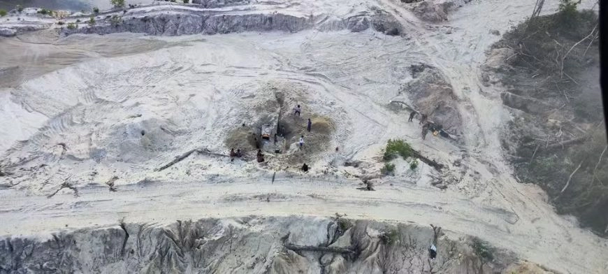 A estimativa é que aproximadamente dois mil hectares tenham sido devastados pela exploração ilegal de ouro, impulsionada por organizações criminosas armadas que invadiram e atuam dentro da área.