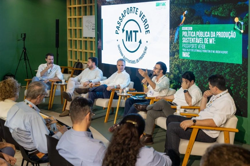 O Instituto Mato-grossense da Carne (Imac) esteve presente na COP 30, na última terça-feira (18), para apresentar o Passaporte Verde, programa pioneiro de Mato Grosso voltado ao estímulo da sustentabilidade para o setor pecuário do estado, através do monitoramento socioambiental do rebanho bovino e de apoio à intensificação da atividade.